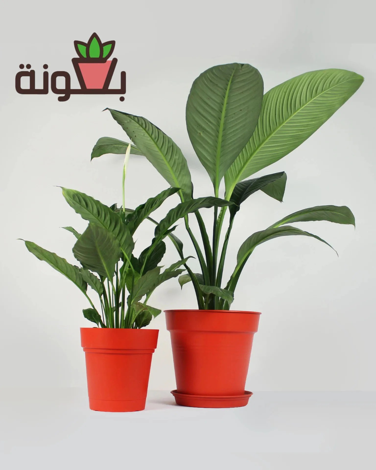 this set includes both the queen lily and peace lily pre-potted in red mintra pots.